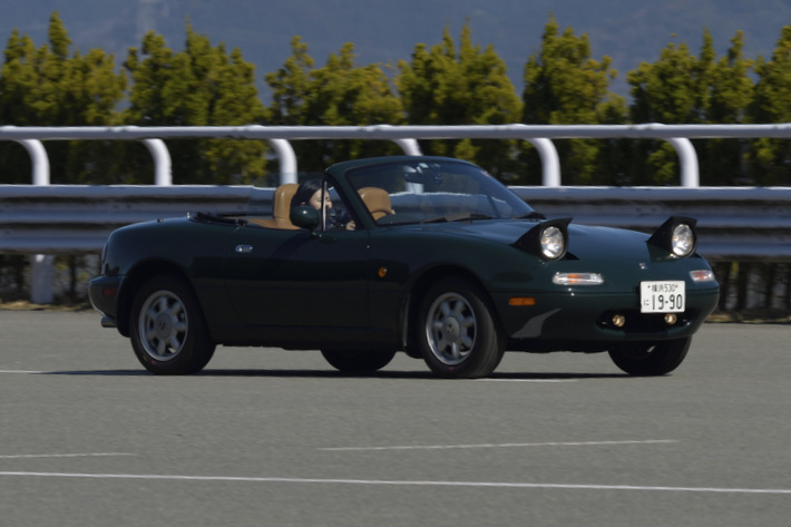 まずはNA型ロードスターだ。天気が良いので、せっかくなのでオープンにして走行する。このNA型ロードスターはマツダのレストアサービスにより各部をリフレッシュされた個体で、ヴィンテージ感は覚えるものの“ボロ”さは一切感じない。