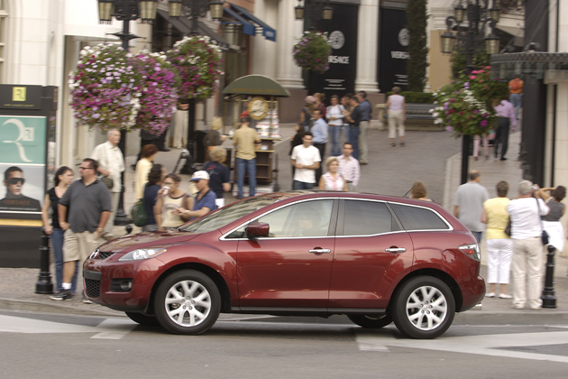 今回、CX-7の試乗は、ひと足先に販売を開始したアメリカのカリフォルニアで行なわれた。そのときに、ロサンゼルスの町で若者たちに、マツダのイメージを直接聞いてみた。その結果、マツダのクルマはスタイリングがよく、装備が充実している割に、車両価格がリーズナブル、という答えが多かった。実際に、このCX-7も一般ユーザーが運転しているところを見かけた。