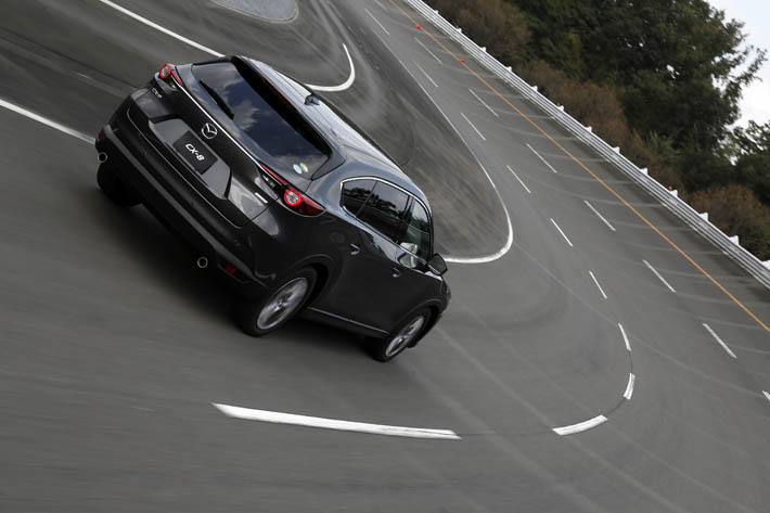 走行安定性は、CX-5と同様、Gベクタリングコントロールにブレーキ制御を加えたGベクタリングコントロールプラスに進化したことが注目される。アクセルペダルを戻した状態でも、コントロールの効果が得られるようになり、制御領域が広がった。
