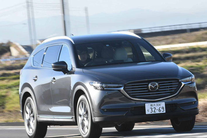 CX-8はマツダの国内SUVラインナップにおける最上位モデルで、日本には導入されていないCX-9をベースに開発されたもの。デザインは魂動デザインをまとい、エレガントさとともに力強さが感じられ、インテリアも一部メッキの加飾を使いながら最上位モデルらしい質感の高さを表現しています。