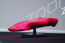 ファンのカウントダウンと共に、ステージ中央の床下から現れたのは、目にも鮮やかな真紅の新型ロードスターだ。その艶やかさは、発表こそなかったものの、マツダのデザイン思想「魂動(こどう)-Soul of Motion」におけるテーマカラー、いわゆる「ソウルレッドプレミアムメタリック」だろう。