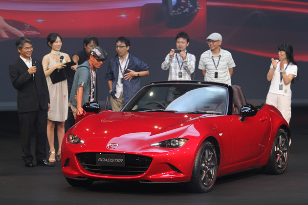 マツダは2014年9月4日、日本・アメリカ・スペインの3カ国3会場で、新型「マツダ ロードスター」のスタイリングを世界で初めて公開した。