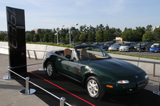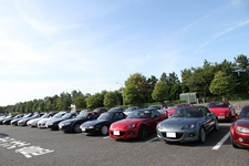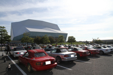 半円形の会場の客席を埋め尽くしたのは、Webによる公募で入場券を手に入れた全国のロードスターファン。Web予約受付からわずか10分で締め切られたというから、相当のプラチナチケットだ。会場の駐車場には色とりどりの歴代ロードスターたちも集結し、その個性を競っていた。