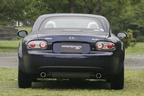 ルーフシステムの変更で重心高が数mmアップし、そうした重量や前後バランスの微妙な変化を補填する目的でサスペンションにもわずかなリファインを加え…と、詳しく見れば走りのテイストにも影響を及ぼしそうないくつかのニュースも見つける事は出来る。一方で、ルーフ収納のために拡大されたデッキ開口部に補強ブラケットを設け、リアデッキ前面の板厚を増すなどの補強策で、「ボディ剛性はソフトトップ仕様と同等を確保」というのもこのモデルだ。サーキット・コースを限界まで追い込む、とそんな走りをしてみれば、そこではより軽量な“オリジナル版”であるソフトトップ仕様に多少の分を見い出す事が出来るかも知れない。が、公道上を「ちょっとスポーティに気分良く飛ばす」とそうしたペースで走る限りは、両ボディには大差ナシ! とこんなコメントで紹介を出来るのが3代目ロードスターなのである。