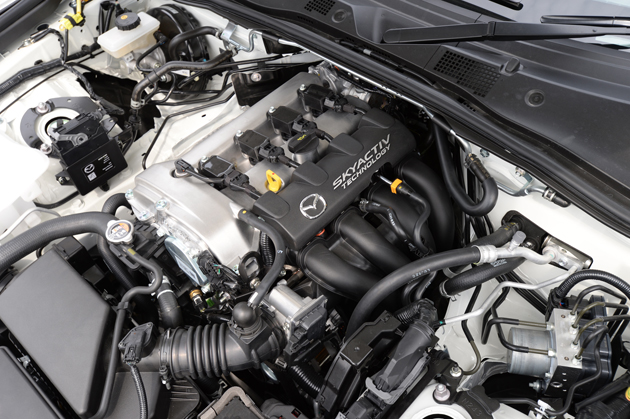 「SKYACTIV-G」1.5リッター直列4気筒 DOHC 16V 直噴ガソリンエンジンは最高出力131ps(96kW)/7000rpm、最大トルク15.3kg-m(150N・m)/4800rpmを発生させる。