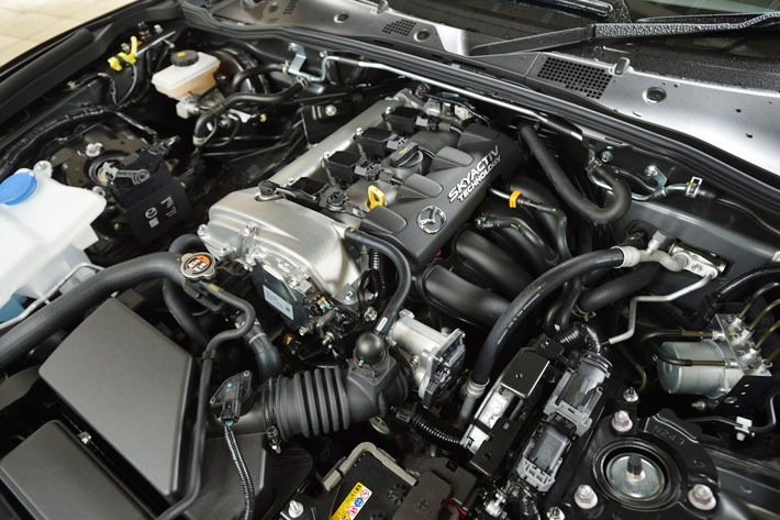 今回の商品改良の情報を見たときに、多くの人がまずパッと目を惹かれるのは、日本ではハードトップモデルのRFに搭載される2リッターエンジンのパワーアップだろう。商品改良後は、従来モデルと比較して、158ps/200Nm→184ps/205Nmとなり、最高回転数は6800rpm→7500rpmに向上した。