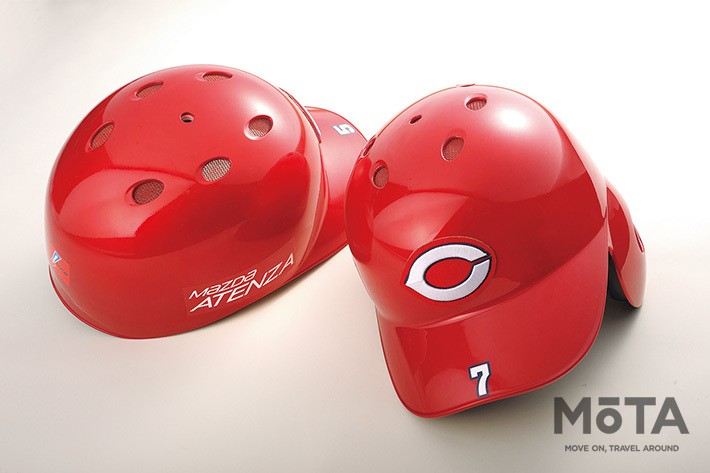 マツダと本拠地を同じくする広島東洋カープのヘルメットは、ソウルレッドプレミアムメタリックをイメージした色が使われている。