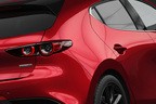 太いリアピラー(後ろの支柱)による、引き締まった後ろ姿が特徴的なマツダ3。