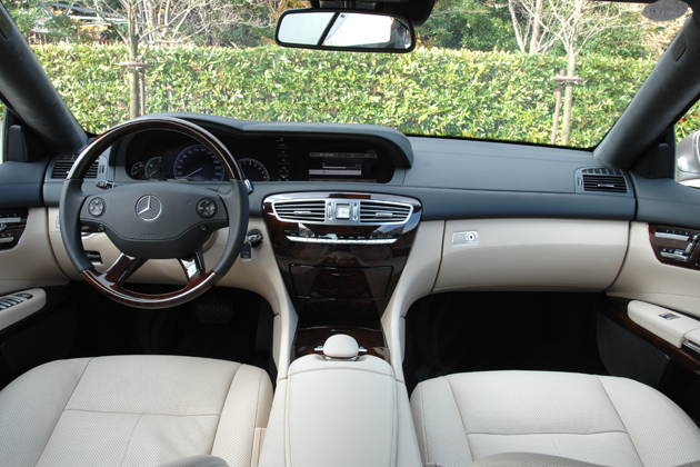 インテリアはパッと見のテイストはSクラスそっくりではあるものの、センタークラスター周りのデザインなどはCL専用設計となっており、よりクーペらしい空間を演出している。ウッド類でやすらぎを、レザー類で深い味わいを表現しつつ、アルミやクローム類を嫌味がない程度に織り交ぜていて、エクステリアのテイストとのコンビネーションもイイ。