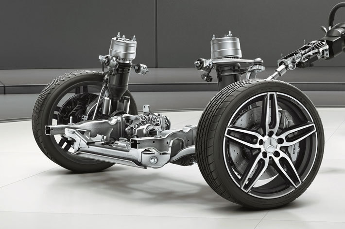 「AMG RIDE CONTROL+」は、高いアジリティやニュートラルなコーナリング特性、優れたトラクションを可能にするシステムとして開発された。特にスポーティなスプリング/ダンパー設定と連続可変ダンパーの「ADS+(アダプティブダンピングシステム)」を採用したマルチチャンバー型エアサスペンションであり、卓越したドライビングダイナミクスと優れた快適性を同時に実現。コーナリング時やブレーキング時などには、スプリングレートを高めることでロールを効果的に抑制する。また、各輪の減衰力をその時点の走行状況および路面状態に合わせて自動で調整する機能も持つ。