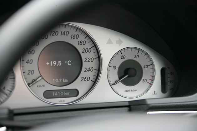 気が使われているのは、燃料投入口だろうか。E320 CDIの燃料投入口は緑色の色づけが施されており、無用な間違いを防止する対策が施されている。最近増えてきたセルフガソリンスタンドにおいて自分で給油する際に、燃料ノズルの色と合わせておくことで事前に違いに気が付くよう工夫がされているというわけなのだ。こういった細かい点も、安全啓蒙に力を注いでいるメルセデスらしいところと言える。