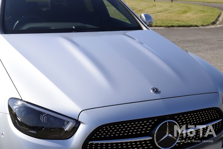 新旧モデルを横並びで比較すると、かなり雰囲気が異なる。旧型モデルのグリルは逆台形なのに対して、新型Eクラスは台形に変更。さらにボンネットの形も変更されており、波打つような特徴的なデザインとなっている。
