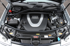 この意味ではアメリカ人のために開発されたMクラスとは異なり、トラック的な味は皆無だ。搭載エンジンは5.5リットルのV8で387PS/54kg-mのパフォーマンスを誇る。エンジン特性もSUVらしくトルクバンドの広いもので、2.5トンもの重量があるGLクラスを軽々と高速域まで運ぶことができる。組み合わされるトランスミッションは7速ATだ。