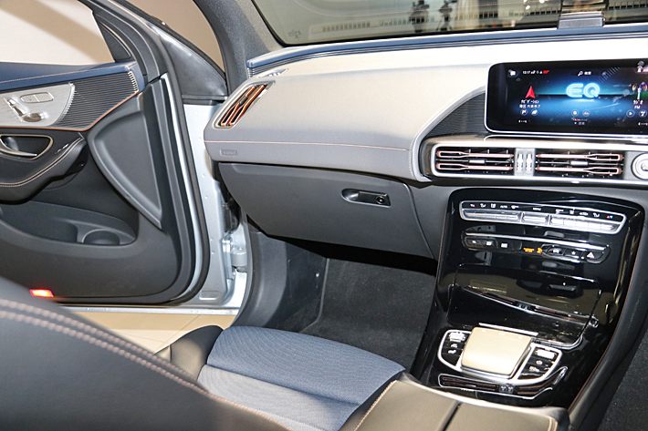 特に目を惹くのは、フロントに採用された大型のブラックパネルだ。ブラックパネルの上端では、左右のマルチビームLEDヘッドライトが繋げられており、EQモデル特有の先進的なデザインとなっている。