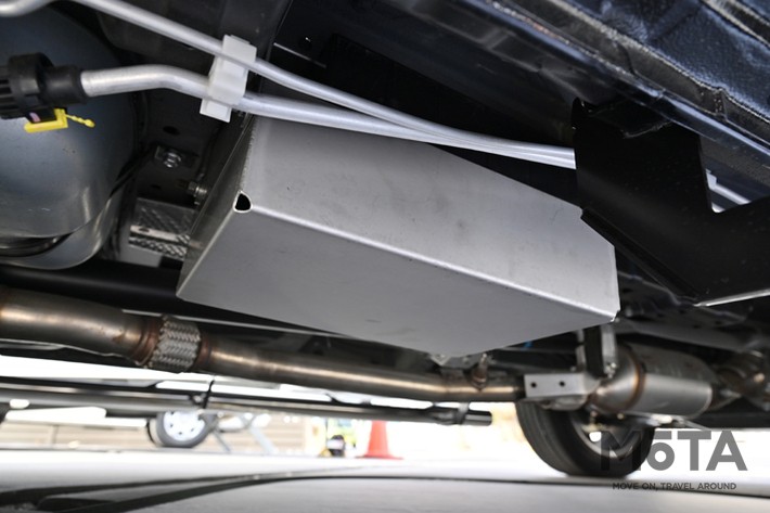 サブバッテリー本体は、車内で邪魔にならないようボディ下のシャーシー部ボックスに設置。荷室スペースには、余分な出っ張りが一切なくスッキリしています。