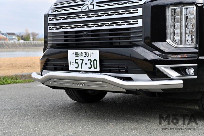 デリカD:5クルーズには、フロントスキッドバー、フェンダーガーニッシュなど、4WDらしい力強さとスタイリングを両立したJAOS製エクステリアパーツが装着可能。