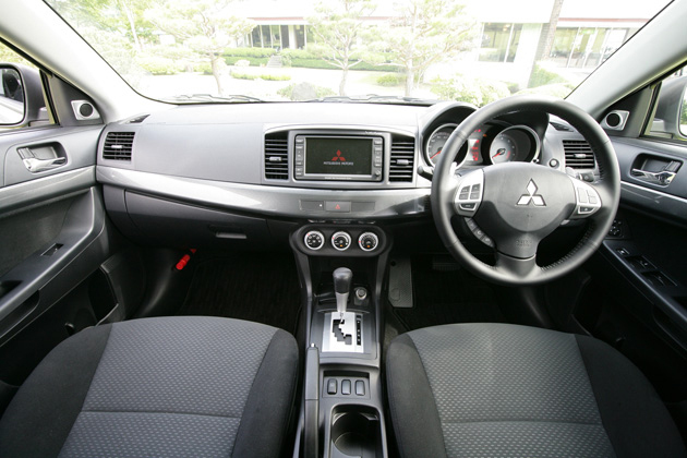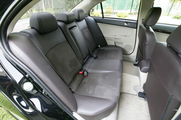 ギャランフォルティスには、使いやすさを追求した多彩な収納スペースを配置。前席には、ボトルホルダー付きA4サイズの大容量ドアポケット、小物用のセンタートレイ、カードホルダー内蔵のグローブボックスを設置。大型フロアコンソールボックスは、リッド裏にポケットティッシュホルダーとペンホルダー、上段は携帯電話などが置ける収納トレイ、下段はCD10枚が収納できる大容量スペースとなっている。後席には、中央にカップホルダー付センターアームレストが備えられる。