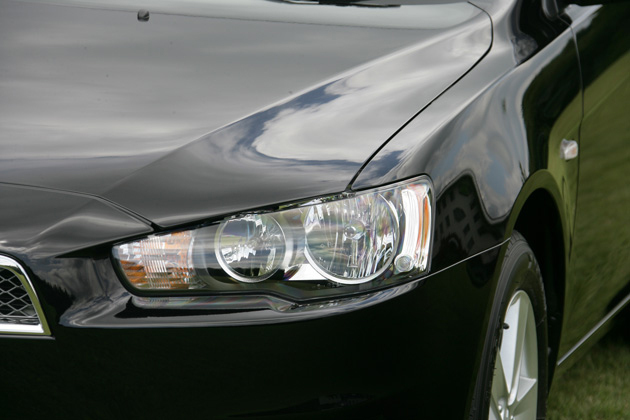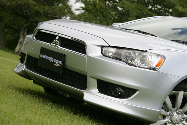 ギャランフォルティスのフロントマスクには、今後の三菱自動車セダンの「新しい顔」を示すデザインアイデンティティが採用されている。三菱自動車のセダンの伝統である逆スラントノーズは、伸びやかなルーフラインと歩行者保護の安全性を両立。上下2段の大きな大径グリルは、しっかりと踏ん張るような安定感を感じさせる。精悍な横長ヘッドランプは、キレのあるワイド感&スポーティ感を演出し、航空機のエアインテークおwイメージした大開口グリルはハイパフォーマンス感を主張する。グリルの中央に置かれたスリーダイヤにも緻密な造り込みが施され、堂々とした存在感とともに、スポーティさを秘めた上質感を表現している。