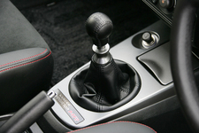 試乗したのはGSR。エンジンは280ps、40.8kg-mだが、ターボはチタンアルミ合金のタービンを採用し、コンプレッサーホイール入口径を縮小させることで、より素早いレスポンスを可能にしている。ミッションは6速MTだ。クラッチペダルは重く、踏みこんだときの反発力も強い。シフトレバーもやや重めだ。