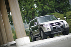 33:67と前後不等トルク配分を行うセンターデフ付4WDシステムをはじめ駆動系にもさして新しいメカは見当たらないが、路面を問わない踏破能力の高さはさすがはパジェロの血統。ただし、この期に及んでエア・サスペンションはおろか、レベライザーの類も設定されないのは残念だ。多人数乗車時やトレーラーの牽引時に、地上高がダウンするために踏破能力も落ちてしまうのは、せっかくの本格オフローダーとしていただけない。