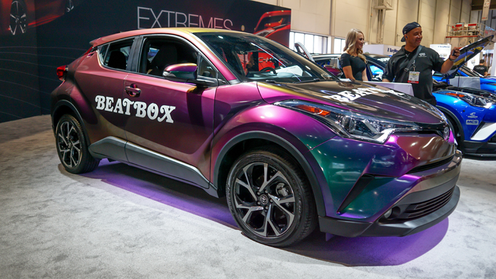 世界最速の過激なSUVであるC-HR R-tuned の隣に出展されていたのがこちらのマジョーラカラーのC-HR BEAT BOXである。