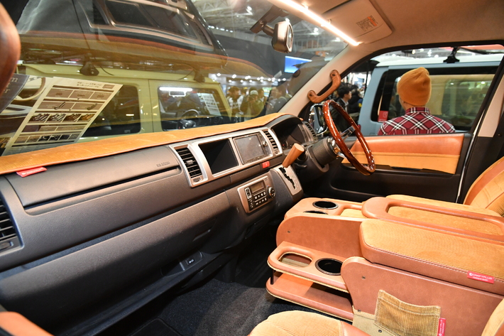 クラフトプラスのブースでは、児島デニムを使用したベッドキットを展示 デニムのシートはどんな車でも制作OK【東京オートサロン2019】 (画像No.