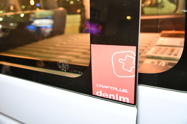 クラフトプラスのブースでは、児島デニムを使用したベッドキットを展示 デニムのシートはどんな車でも制作OK【東京オートサロン2019】 (画像No.