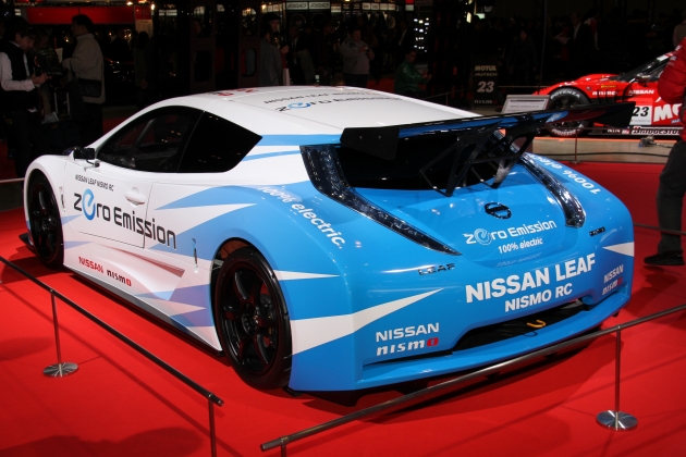 電気自動車「リーフ」をベースに、モーターをミッドシップ置きしたNISMO製レーシングマシン。ボディはカーボン製だ。