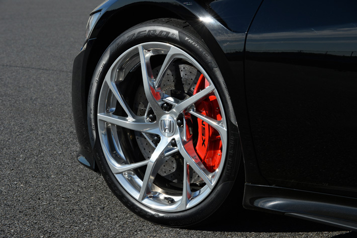 3.5リッターV6ツインターボエンジンに3基のモーターを組み合わせた「SPORT HYBRID SH-AWD」により、427kW/646N・mのシステム最大出力を余すことなく路面に伝えてくれるスーパーハイブリッドスポーツのNSX。