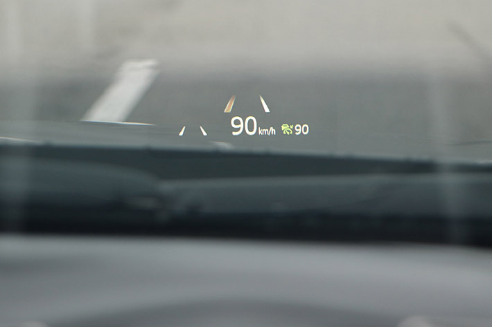 テスト車にはミリ波レーダーと単眼カメラからの情報を基にした30km/h以上のスピードに対応する先行車追従型のアダプティブクルーズコントロール(写真:左)と、車線の中央をキープしようとするレーンキープアシスト(写真:右)が装備されていたので試してみた。