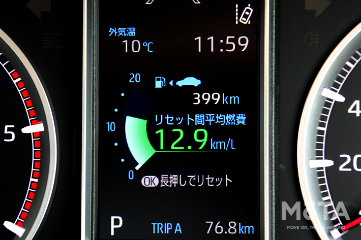 なお、今回の燃費測定は2月27日に行い、天候は晴れだったものの、最高気温は10度前後という中でのテストとなった。朝10時ごろに青山にあるMOTA編集部を出発し、高速、郊外路、市街地・街乗りの順で走行し、16時ごろに再びMOTA編集部へ戻るルートを選択した。燃費の数値は車両の燃費計を使用し、総合燃費のみ各セクションの数値を元に計算したものとなっている。エアコンは24度設定のフルオートで、全域をDレンジで走行している。