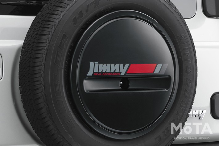 ジムニーは大きく3つのグレードが用意されており、最上級グレードのXCのみスペアタイヤハーフカバーが純正装着されており、それ以外のグレードはカバーレスとなっている。
