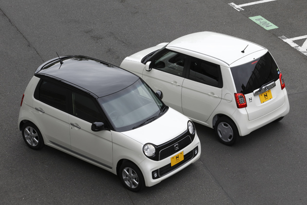 手前から、N ONE Premium・Lパッケージ 2トーンカラースタイル (クリスタルブラック・パール×プレミアムホワイト・パール)、N ONE G (プレミアムホワイト・パール)