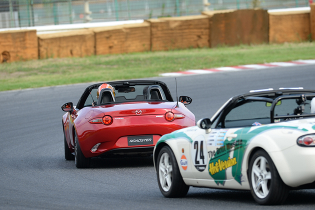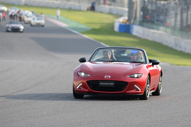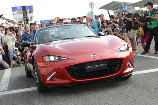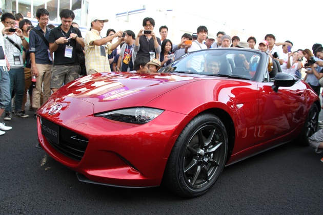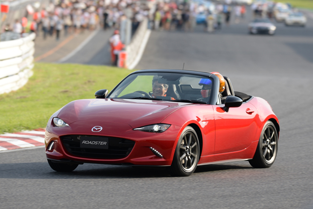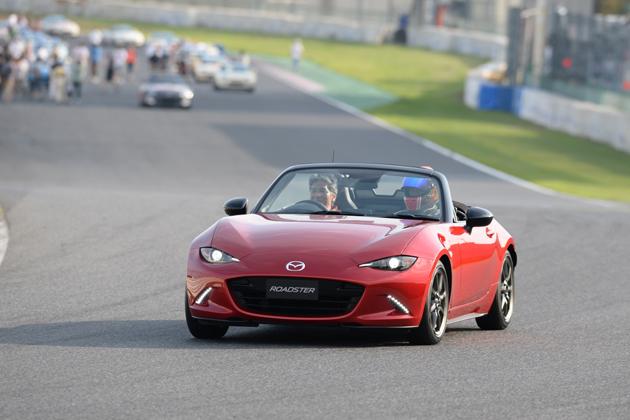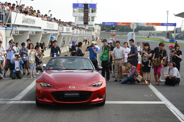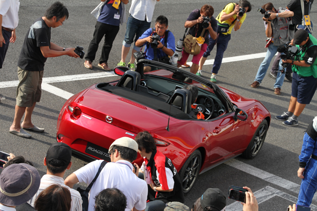 新型ロードスター(ND)の初走行シーンが筑波サーキットにてサプライズで披露された