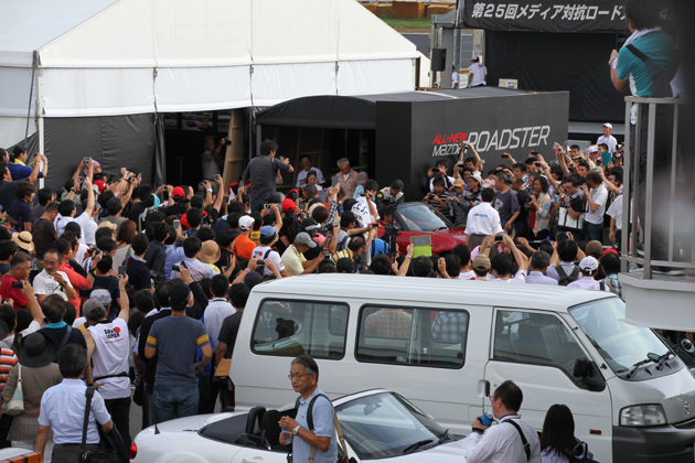9月6日(土)に筑波サーキットで開催された「第25回メディア対抗ロードスター4時間耐久レース」決勝レース直前に、展示されていた新型ロードスター(ND)のエンジンが掛けられ、筑波サーキットを僅か2周のみではあったがサプライズ走行が披露された