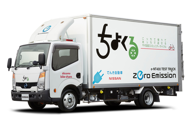 日産自動車株式会社は、100%電気トラック「e-NT400テストトラック」の実証運行を、千代田区のコミュニティサイクル事業実証実験「ちよくる」内で、本日から開始すると発表した。