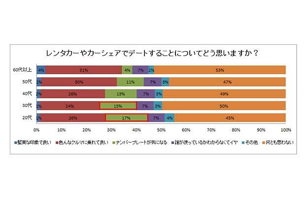 この結果によると、若い世代ほどレンタカーやカーシェアリングをデートで利用する傾向があることが明らかとなった。
