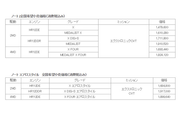今回の価格改定は、近年の為替変動による原材料や部品価格、物流コストの高騰に起因するもので、これまで企業努力により価格上昇を吸収してきたが、「ノート」と「マーチ」については、上記の影響が大きいことを鑑み、価格を改定するに至った。