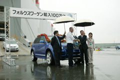 フォルクスワーゲンが日本に正規輸入する「フォルクスワーゲン」ブランド単独の累計輸入台数が100万台に達した。日本国内で輸入・販売されている外国車ブランドでは初めてとなるこの記録を記念して、6月2日、「フォルクスワーゲン輸入100万台記念式典」が開催された。来賓及びプレス関係者が見守る中、100万台記念車が陸揚げされた。