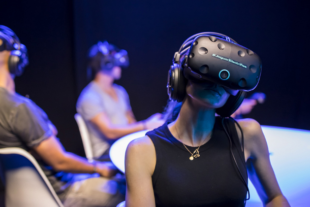ゲストたちはI-PACE コンセプトの仮想シートに乗車して、ヴェニス・ビーチを360度見渡したり、車両が少しずつ組み立てられていく様子を見たり、砂漠の中を自分に向かって走り去っていく様子をバーチャル世界で楽しんだ。さらに、他の参加者とインタラクティブなコミュニケーションが行われていた。