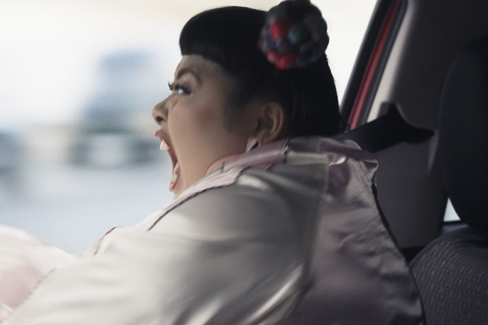 元(CG前)の映像では、すごくカッコイイ感じの女性が演じられていたので、そういう感じで演じた方がいいのかなと意識してました。自分の中で「カッコイイ女性」=「車を乗りこなしている方」というイメージがあるので、車を乗りこなしてる感を出そうと思ったら、なんか…そういう感じではなかったみたいで…。ちょっとあの、もうちょっと、面白めの、みたいな…感じでした。