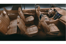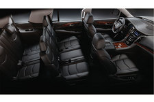 「キャデラックエスカレードプレミアム」には、2 列目にベンチシートを採用して、3 列 8 人乗りシートを標準装備。さらにオートマチックパーキングアシストやリアカメラミラーなどを新規搭載し、先進の走行性、テクノロジーに加えて、多彩なライフシーンに応えるユーティリティーを向上させた。