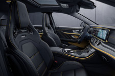 インテリアは、リム下部がフラットな形状のAMG パフォーマンスステアリングホイールにAMGロゴをあしらっている。また、タッチコントロールボタンとシフトパドルを搭載しているので、スポーティなドライビングを楽しむことができる。運転席と助手席のシートは、ラテラルサポートが強化されたため、高速走行時にも乗員の身体をしっかりと保持する。また、独特のシートカバーレイアウトに、ブラックナッパレザー、ナッツブラウンナッパレザー、マキアートナッパレザーの3種類を設定。ドアセンターパネルは、シートに合わせたデザインとした。