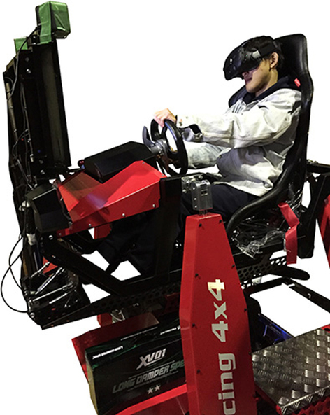 参加者は専用シミュレーターに乗り込み、ヘッドマウントディスプレイを装着。