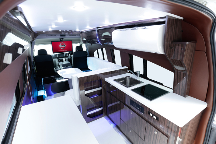 ■NV350キャラバン・リチウムイオンバッテリー搭載グランピングカー(参考出展車)