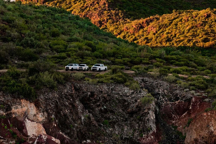 今回は新型タコマ TRDプロのティザー画像が公開されたのだが、シュノーケルマフラーが装着され、川を渡るなどハードな走行にも耐えうる仕様になっていることがわかる。