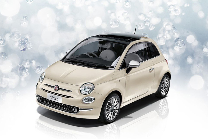 ボディカラーのアイボリーは500では世界初採用の色となり、親しみのある500のエクステリアに新鮮な表情に。さらにクローム仕上げのエクステリアミラーハウジングや15インチダイヤモンドフィニッシュアルミホイールがアクセントになり、華やかな印象を一層高めた。