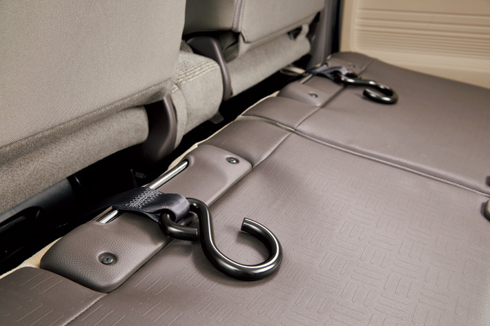 後席のシートフレームを専用設計とし、シート収納時の高さを大幅に低減。たたみ方を工夫することで4人乗車時の座り心地を損なうことなく、車いすの方が乗車した際の足元の快適性が向上した。