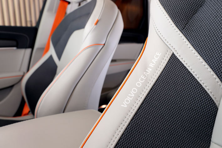 いっぽう室内(インテリア)では、各所に鮮やかなフレア・オレンジを配置。ボルボ・オーシャンレースに通じるアクティブなライフスタイルや冒険心を表現する。