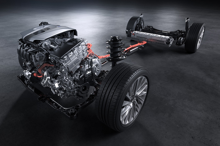新型ESはGA-Kプラットフォームを採用し、高剛性化・低重心化を実現している。パワートレインは2.5L直列4気筒とハイブリッドシステムを組み合わせたものが採用される。レクサスによると、ダブルウィッシュボーン式リヤサスペンションの採用や、ジオメトリーの最適化で、高い操縦安定性を確保。また、ラック平行式電動パワーステアリングによる優れたステアリングレスポンスで、「すっきりと奥深い」走りを実現しているそうだ。